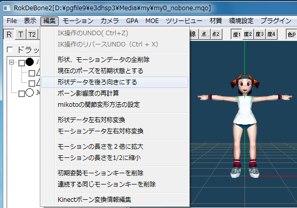 GitHubに2016/04/12にpushしたバージョンのRokDeBone2から、形状を後ろ向きにしないでもbvhを前向きデータに変換できるようになりました。