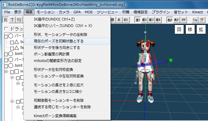 ツールボタンのRボタンを押し、IKでbvhと初期ポーズと同じポーズを作ったら、