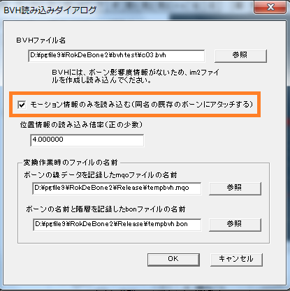 bvh読み込みの際に、RokDeBone2とbvhとの仕様の違いを吸収するために