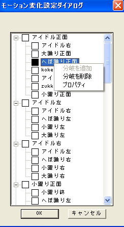 4種類のイベント番号をトリガーとして、「アイドル右」、「へぼ踊り左」、「小躍り左」、「大踊り左」の4種類のモーションに