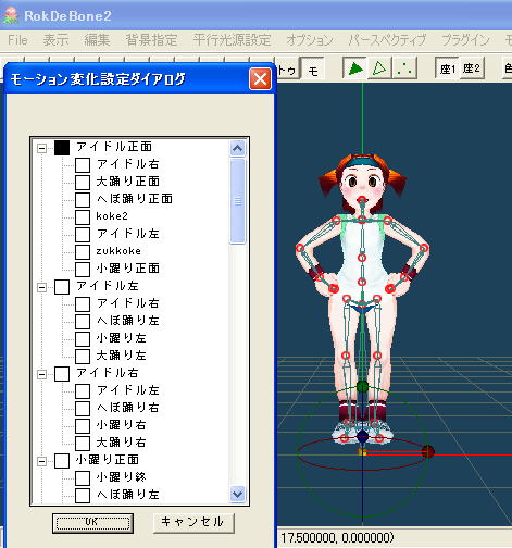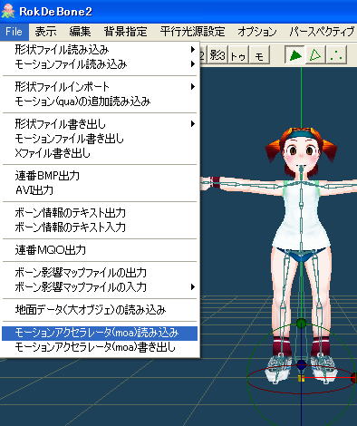 上の図はRokDeBone2で*.moaファイルを読み込み、ツールバーの「モ」ボタンを押したときの画面です。