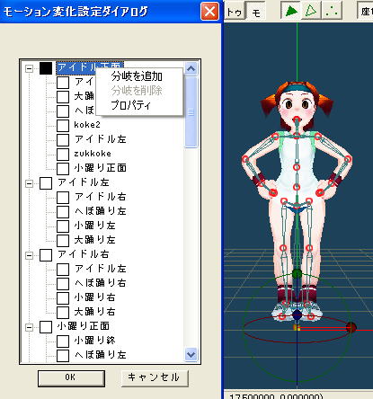 例えば、上図では「アイドル左」というモーション再生中に