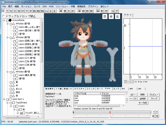 RokDeBone2 ver5.3.1.5から透明度のキーフレームアニメーションが出来るようになりました。