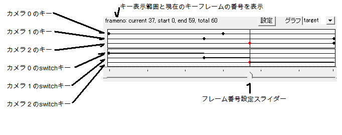 カメラを切り替えたいフレーム番号にスライダーで移動して