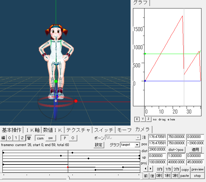 カメラのキーの値はグラフウインドウでも調整できます。
