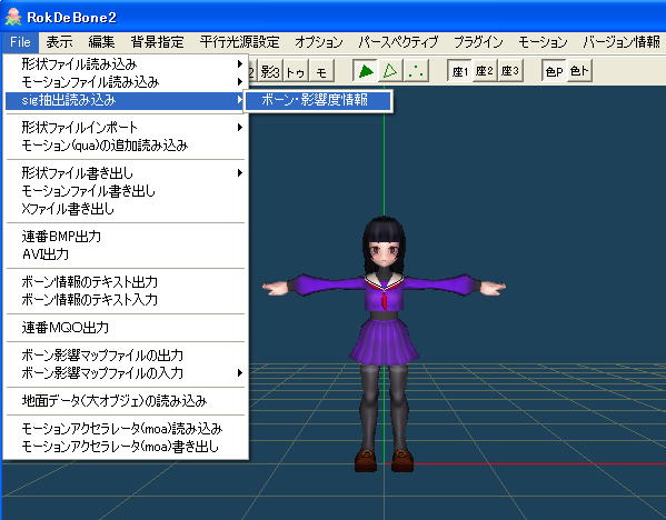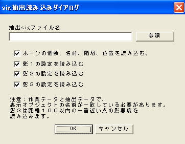 ボーン情報、影1、影2、影3をそれぞれ個別に読み込めるようになっています。