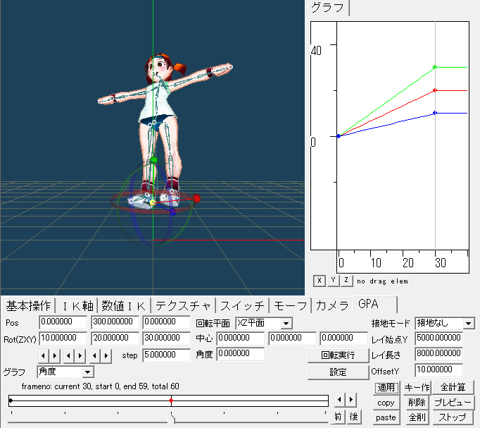 そこでキャラクター全体の姿勢のアニメーションを独立して編集再生出来るようにしたのがGPA機能です。