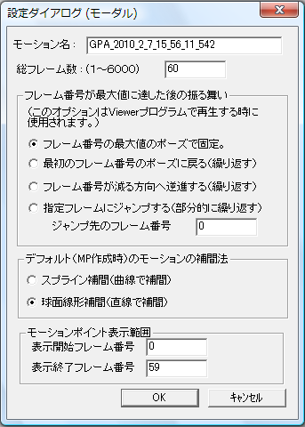 それぞれのフレーム番号は設定ダイアログで設定した表示開始フレーム番号と表示終了フレーム番号によって決まり