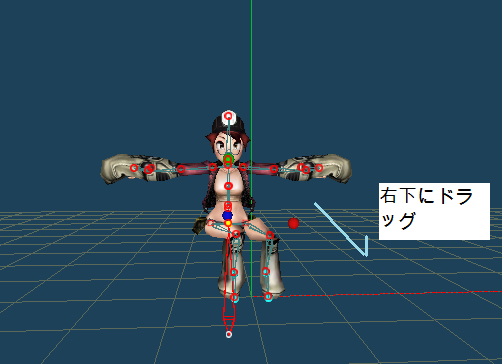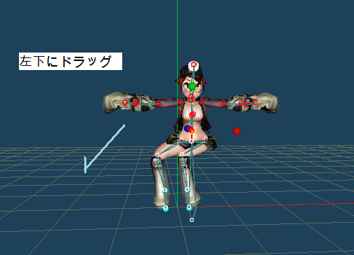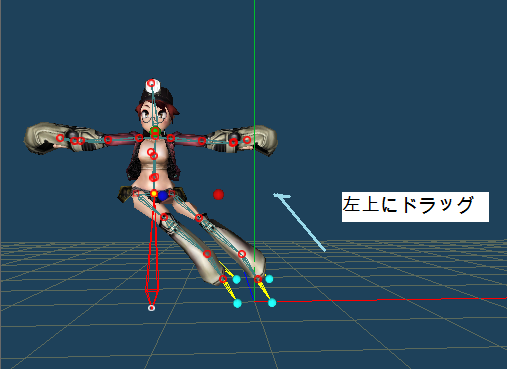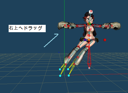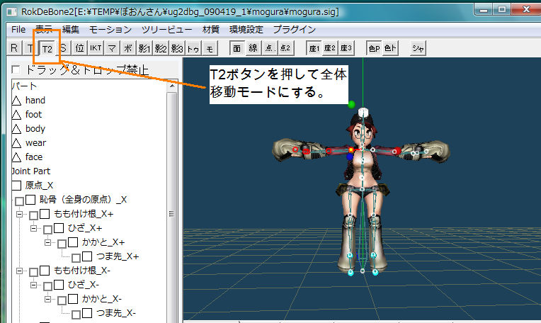 「T2」モードではどのジョイントをドラッグしても体全体が動きます。