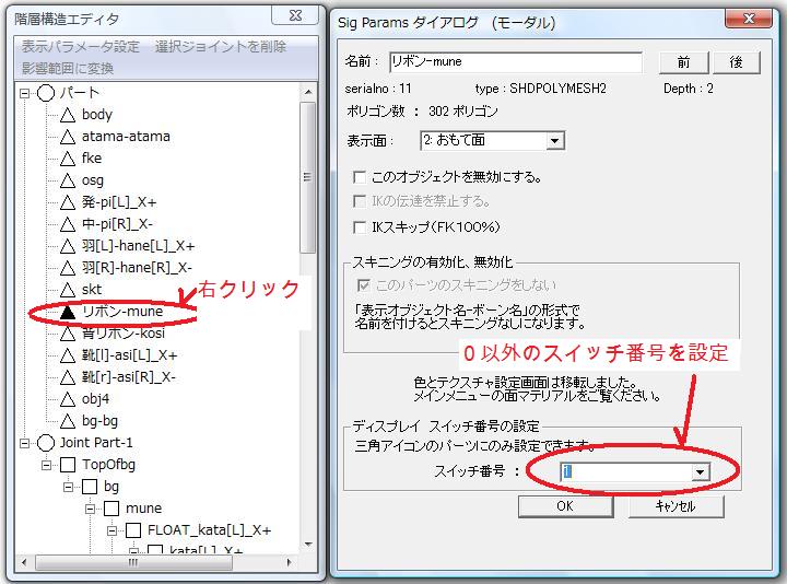 まず階層構造エディタでリボンを右クリックし、sig paramsダイアログを出します(図2)。