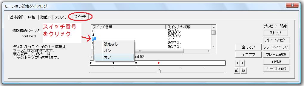 スイッチアニメを作り始める前に、どのボーンにどのスイッチ番号のアニメを作成するかを決めてください。