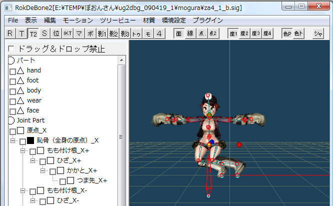 図1はIKターゲットで足元を固定し軸指定なしでT2したときの図です。