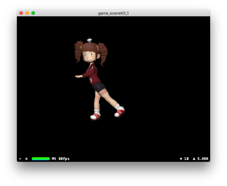 いつものキャラクターをdaeで出力してgamekitで読み込ませ、アニメーション再生しているときのスクリーンショットを載せます。