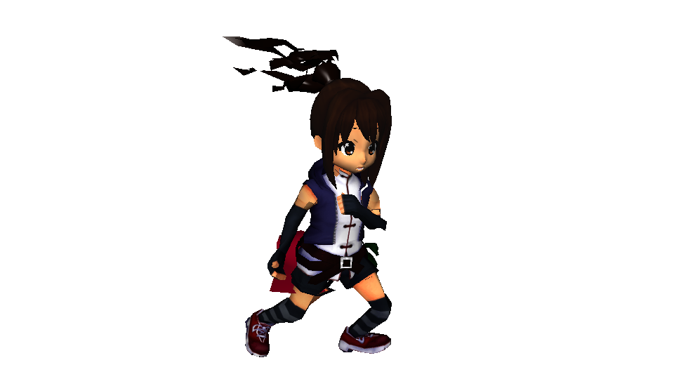 赤いタオルとポニーテールの動きがソフトボディによる物理シミュレーションです