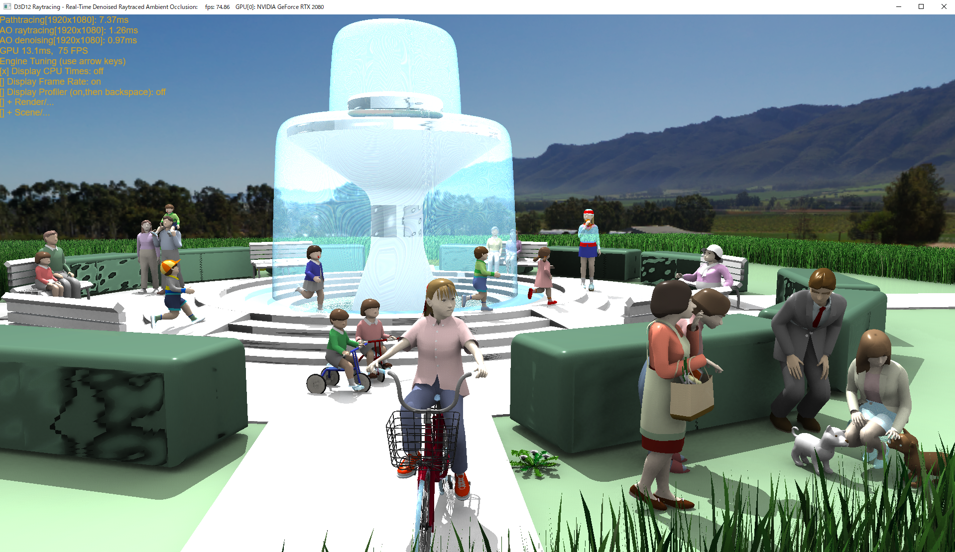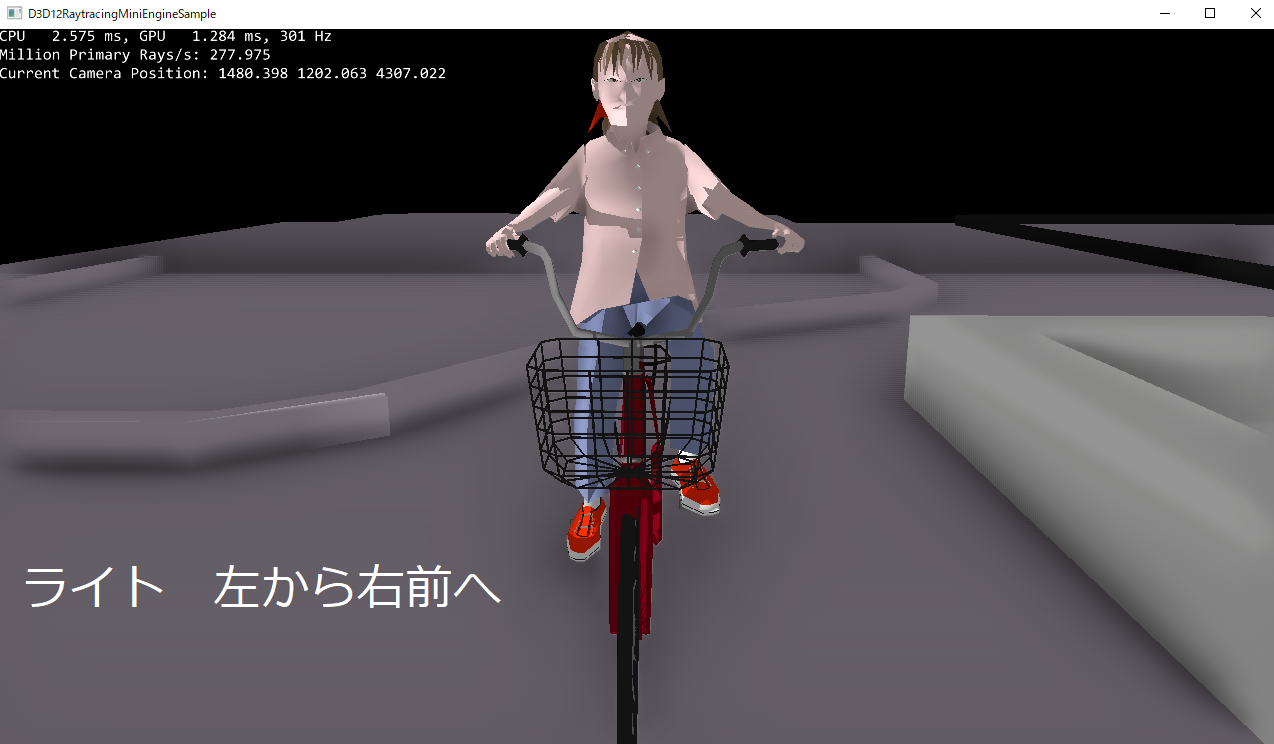 噴水のような大きなガラス材質があるこにより1フレーム当たりの行が時間は7ms程になりました